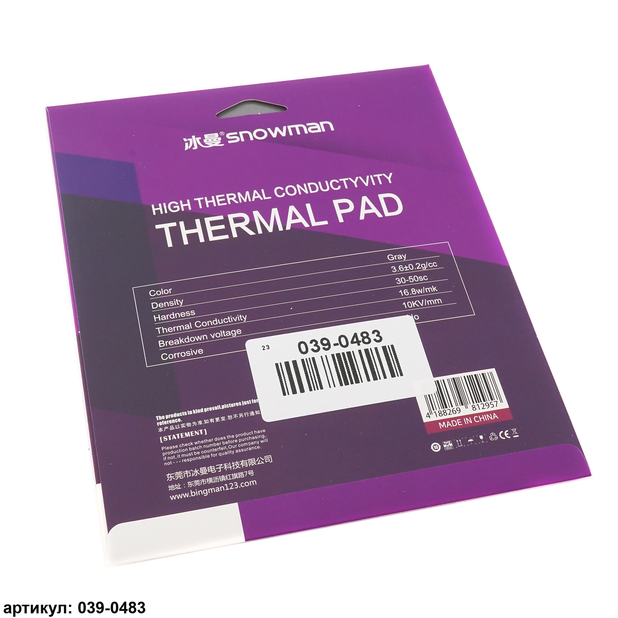 Термопрокладка 120x120х0.5 мм Snowman Thermal Pad 16.8 Вт/(м*К)