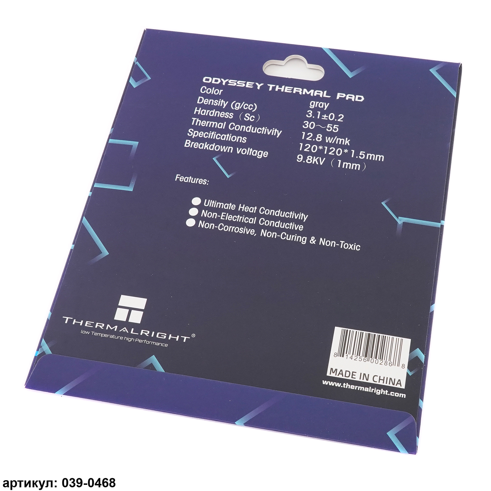 Термопроводящая прокладка размером 12 на 12 см и толщиной 1,5 миллиметра используется для передачи тепловой энергии от греющихся элементов (видеочипов, модулей памяти, процессоров и т. п.) на радиатор системы охлаждения. Термпопрокладка эластична, легко принимает любую форму и скрадывает элементы неровности двух поверхностей. Следует иметь в виду, что термопрокладки бывают разной толщины и обладают разной теплопроводностью и для каждого конкретного случая надо подбирать свою. Эффективность работы термопрокладки зависит от теплопроводности. Чем выше теплопроводность, тем лучше работает прокладка. В данном случае теплопроводность составляет 12.8 Вт/(м*К)