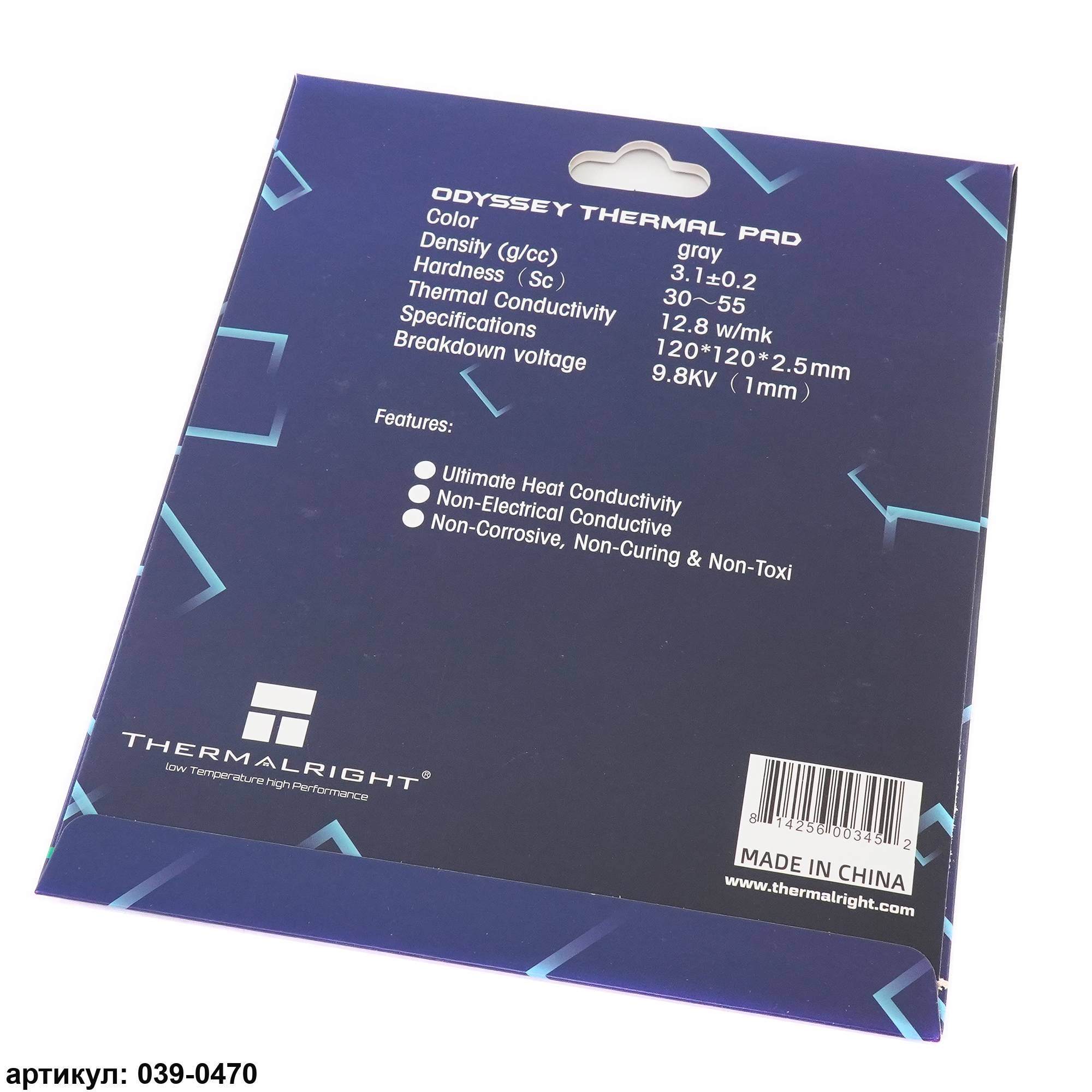 Термопроводящая прокладка размером 12 на 12 см и толщиной 2,5 миллиметра используется для передачи тепловой энергии от греющихся элементов (видеочипов, модулей памяти, процессоров и т. п.) на радиатор системы охлаждения. Термпопрокладка эластична, легко принимает любую форму и скрадывает элементы неровности двух поверхностей. Следует иметь в виду, что термопрокладки бывают разной толщины и обладают разной теплопроводностью и для каждого конкретного случая надо подбирать свою. Эффективность работы термопрокладки зависит от теплопроводности. Чем выше теплопроводность, тем лучше работает прокладка. В данном случае теплопроводность составляет 12.8 Вт/(м*К)