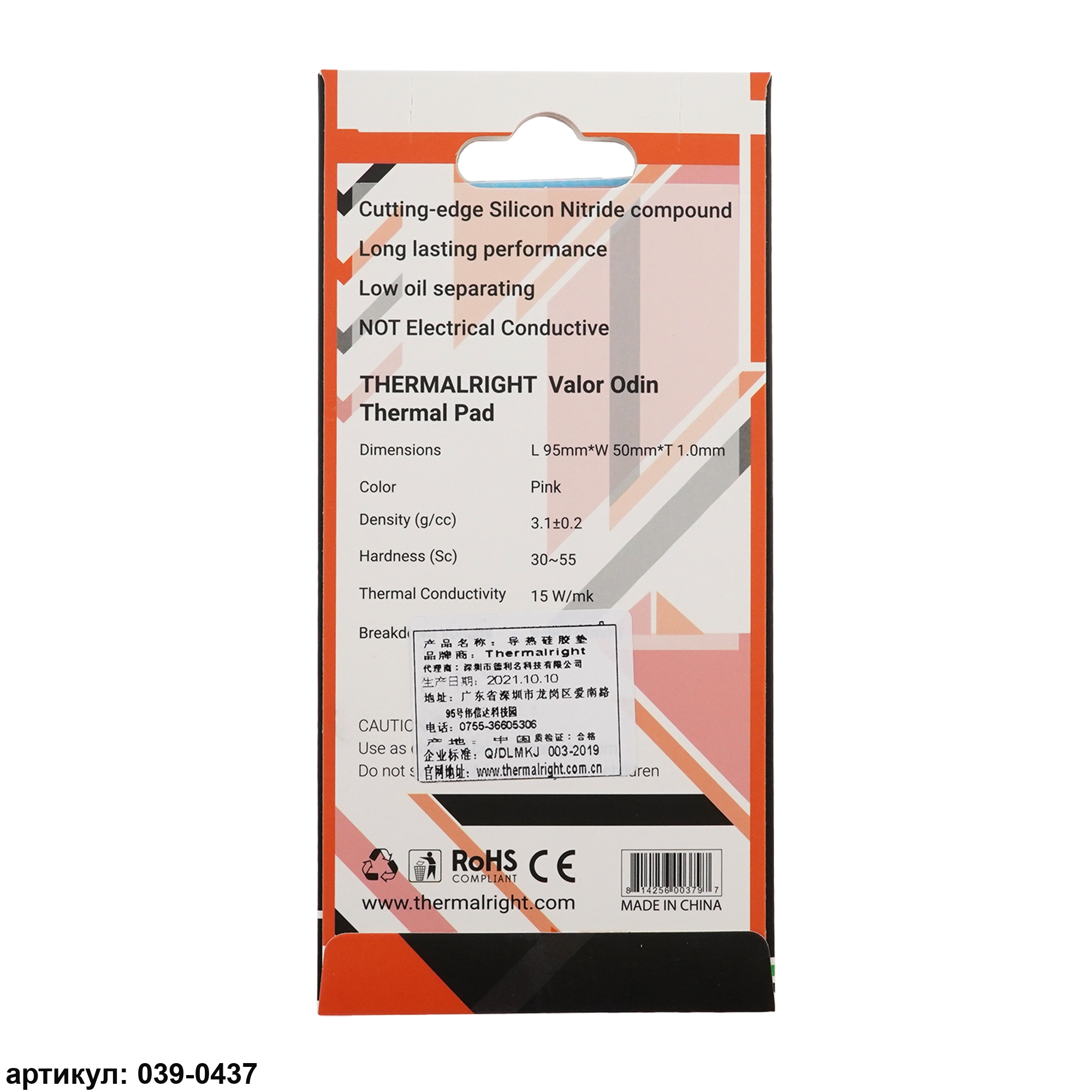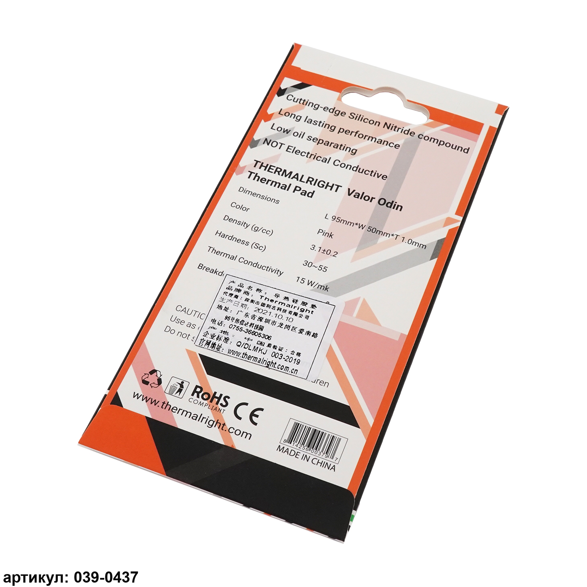 Термопрокладка 95x50x1.0 мм Thermalright Valor Odin 15 Вт/(м*К)