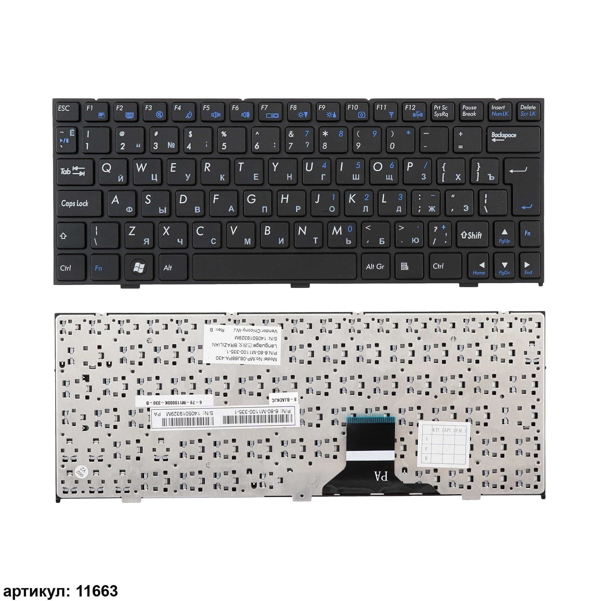 Клавиатура подходит к ноутбукам: ViewSonic VNB-109, VNB109, Clevo M1100, M1110, M1110Q, M1111, M1115, DNS 0121598, 0121595, 0121905, 0123869, 0128279, 0130182, 0131339, 0132917, 0144442, 0144444
