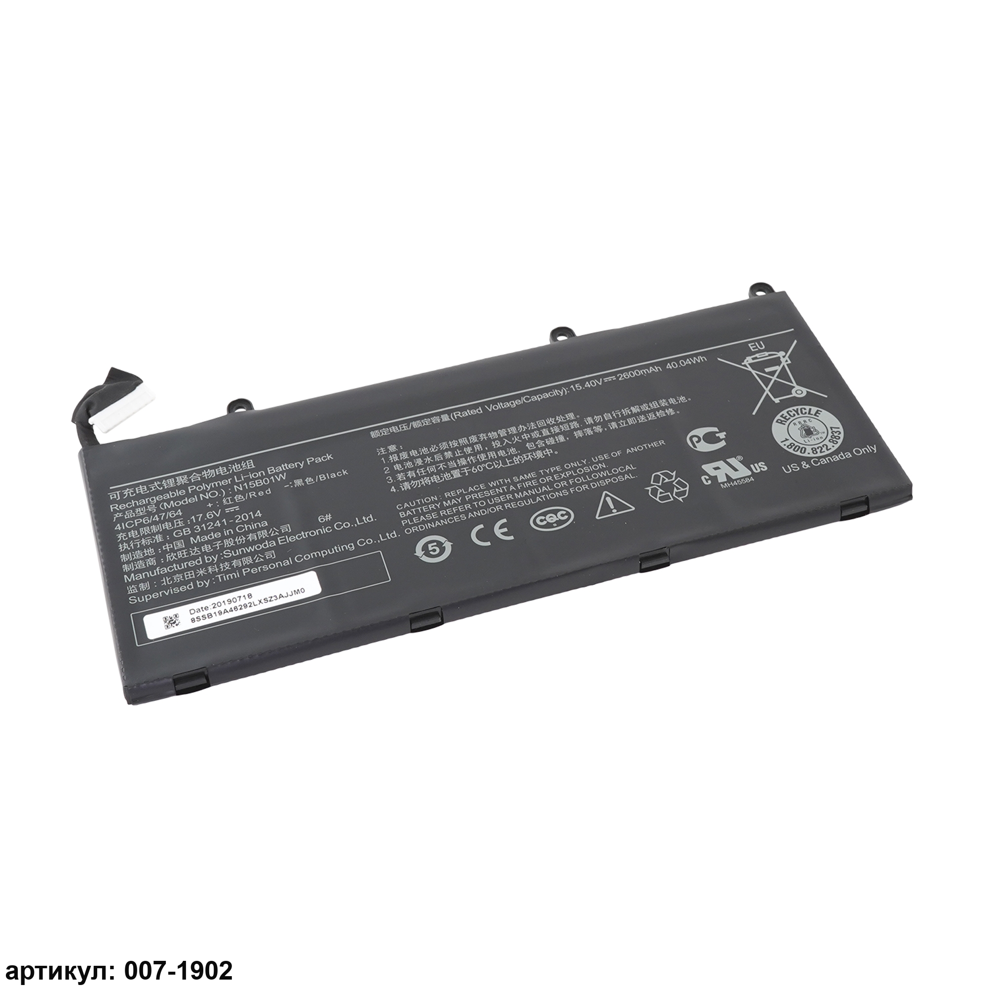 Подходит к сериям ноутбуков: Xiaomi Mi Ruby 15.6Совместимые P/N: N15B01W